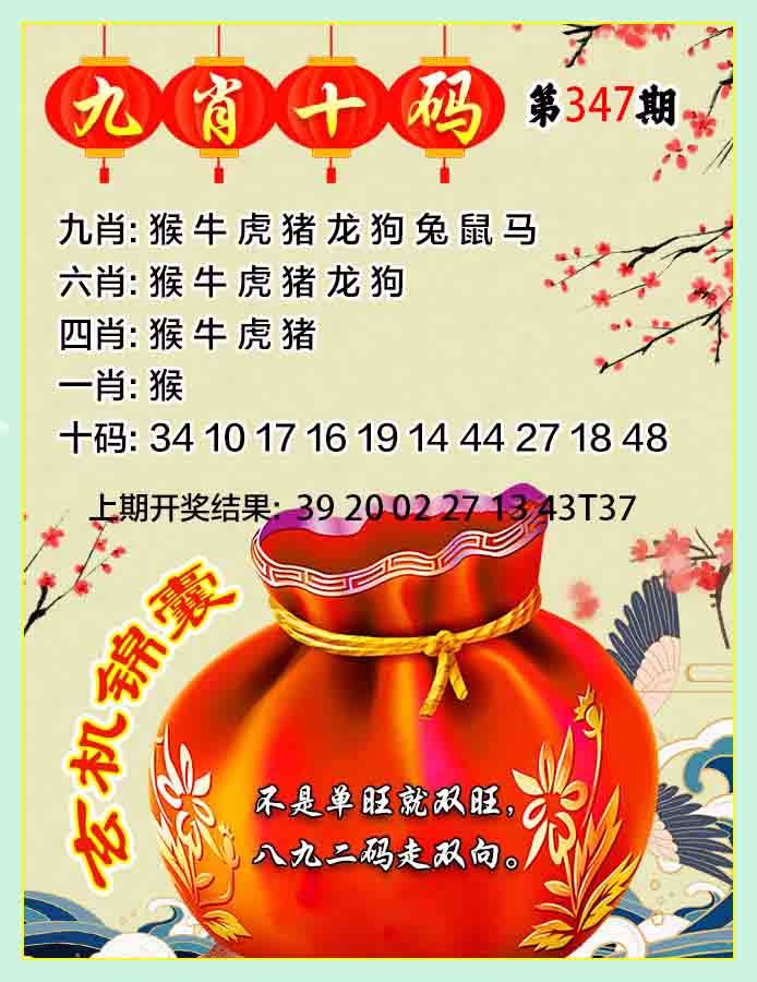 347期『九肖中特』【牛猪猴龙马鸡兔蛇鼠】开